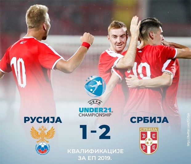 Младежкият национален отбор на Сърбия се класира на Европейското първенство през 2019 година, като в осмия кръг на квалификациите победи Русия като гост с 2:1.